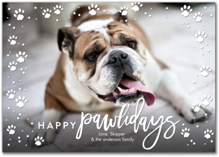 I’m just coming back from a bad cold that kept me in bed for almost two weeks, so I’ve been a little behind on all the normal holiday festivities like cards and Christmas shopping and decorating. But so many of you have always loved our holiday card round-up, so I felt like we needed to get an updated one on here. Plus, card companies are really getting into creating dog cards and it’s hard to even choose one because there are so many fun options!
