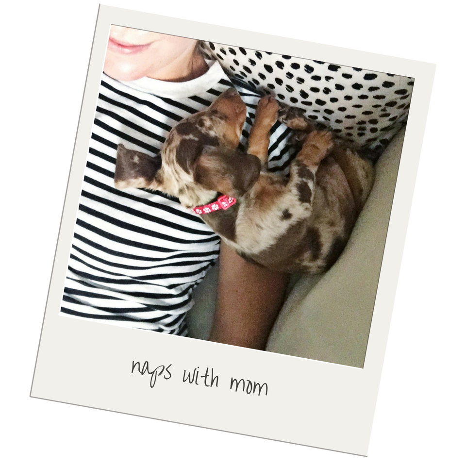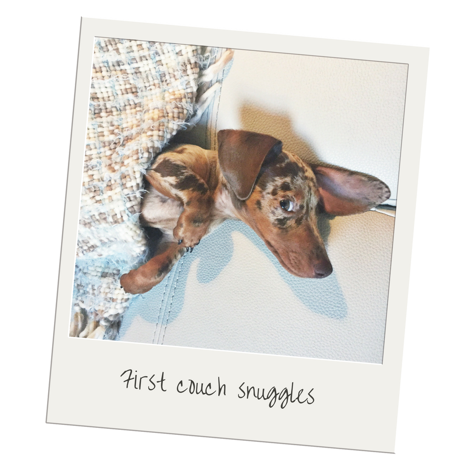 Obviously, we take a lot of pictures of our dogs and have a ton of puppy pictures. In honor of the holiday, I wanted to share a few of my favorites. They're not all high-res or high-quality. Some of them are, well, kind of crappy. But these are the photos that captured the moments I'll always hang onto—first snuggles, first naps, first walks. Is there anything sweeter than those first memories? I hope you enjoy the little walk down memory lane with us.